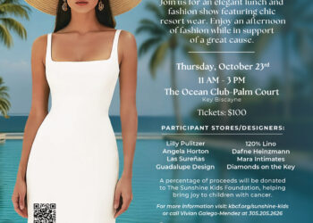 Benefiting the Sunshine Kids Foundation, an organization dedicated to supporting young cancer patients. Join the Key Biscayne Fund for the Sunshine Kids for a lunch featuring chic resort wear. Enjoy an afternoon of fashion and fun while supporting a great cause. It’s a lunch and fashion show for a good cause. Thursday, October 23, 2025