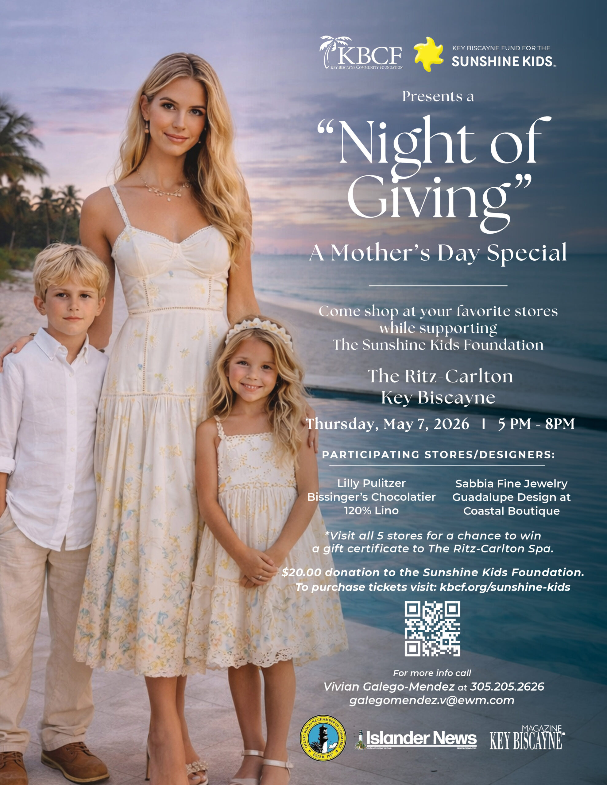 Join the Key Biscayne Fund for the Sunshine Kids for a Night of Giving at the newly renovated Ritz-Carlton Key Biscayne. Come shop at your favorite stores and enjoy an evening of fashion and fun while supporting a great cause.